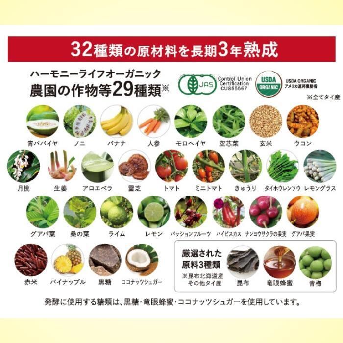 オーガニック原材料にこだわった月間3000本のみ製造されている”本物”の酵素 【ハーモニーライフ抗酸化酵素 極み】は、世界でも取得の難しい6つのオーガニック認定をされたタイの農園で製造されています。